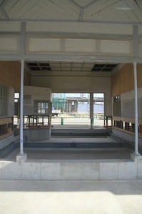 南海 本線 浜寺公園 2017.12.30 南海電鉄 2025年09月25日 南海本線の浜寺公園駅。 高架化工事の準備が始まっていましたが、 上下線ともにまだ旧ホームが現役だった頃です。(2017.12.30/浜寺公園) 旧駅舎は曳家で移動した直後だったようです。 まだフェンスで囲まれて工事中で、中身もがらんとしていました。 (2017.12.30/浜寺公園)