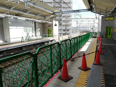 おおさか東線の新大阪方面ホーム(手前)と、久宝寺方面ホーム(奥)。