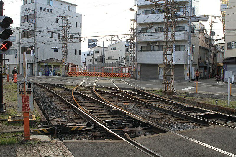 阪堺 上町線 住吉公園 2016.03.20 廃止直後の住吉公園駅 南海電鉄 2024年12月27日 廃止から1ヵ月ほど経った後の住吉公園駅。 線路とホームは残っていますが、架線はすでに撤去されていて、 列車の来ない線路もかなり錆びていました。(2016.03.20/住吉公園) 住吉-住吉公園間の線路跡。 踏切のところ以外はフェンスで覆われていました。(2016.03.20/住吉-住吉公園) 住吉駅。 ポイントと平面交差は残っていますが、 住吉公園へ向かう線路はフェンスで覆われていました。(2016.03.20/住吉)