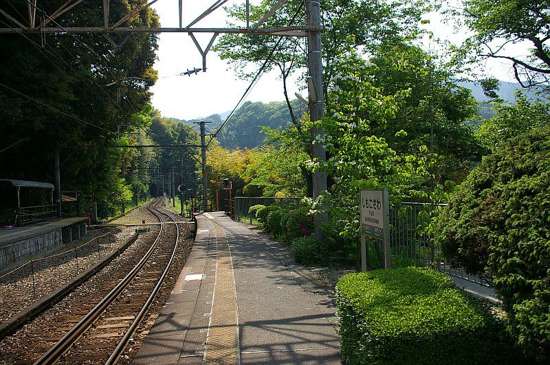 極楽橋駅の駅前。