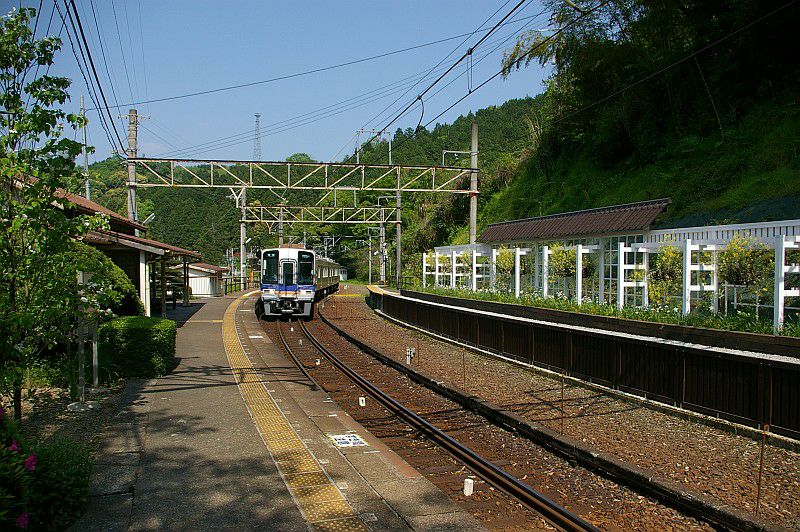極楽橋方面から高野下駅に入線する対向の2000系。