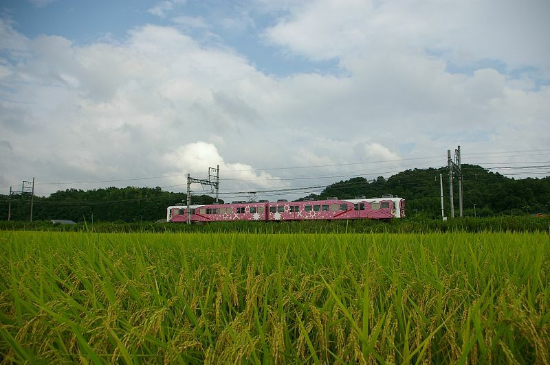 忍者列車のラッピングが有名でしたが、マルーンと白の一般色の編成も存在していました。
