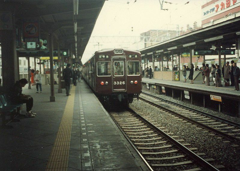 阪急 京都線 淡路 1988年 阪急電鉄 2022年01月07日 淡路駅に停車中の3300系普通。 この頃になると方向幕も付けられて、現在と同じ新しい顔になっています。 (1988年/淡路) 千里線2300系普通。 こちらはまだ更新前の古い顔のままで、方向幕もなく、行先板が使用されていました。 (1988年/淡路) 大阪市交60系。 堺筋線から阪急線に直通する60系は、性能的には30系に近いですが、 デザインは御堂筋線の10系に似た新しいデザインとなっていました。 当時の堺筋線は天下茶屋まで開通しておらず、終着は動物園前でした。(1988年/淡路)