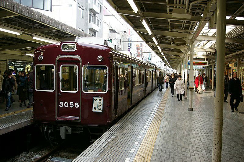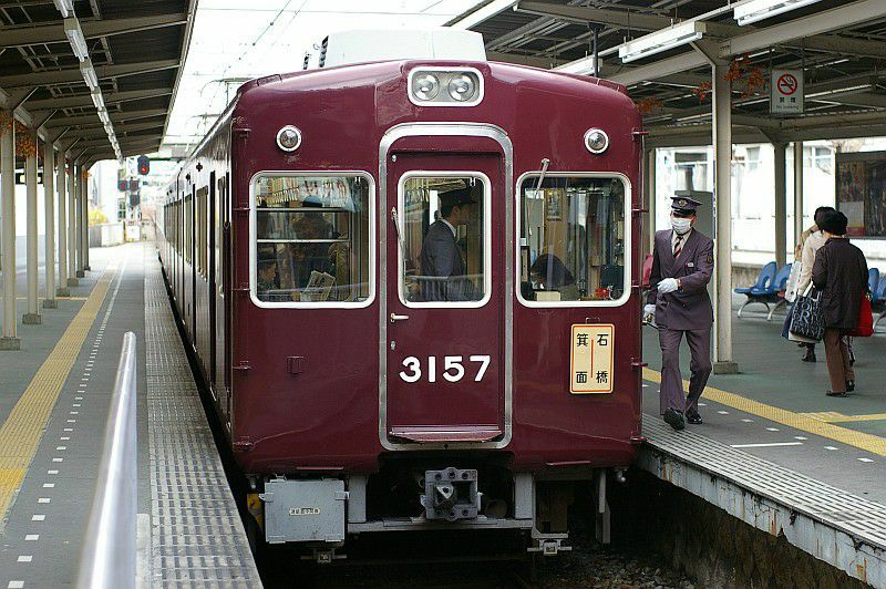 阪急 箕面線 石橋 2008.12.11 3100系 阪急電鉄 2023年05月11日 石橋駅に停車中の箕面線の3100系。 箕面線にも方向幕の付いていない、古いタイプの車両が残っていました。 よく見ると、連結器の異なるタイプの車両があったようです。 (2008.12.11/石橋)