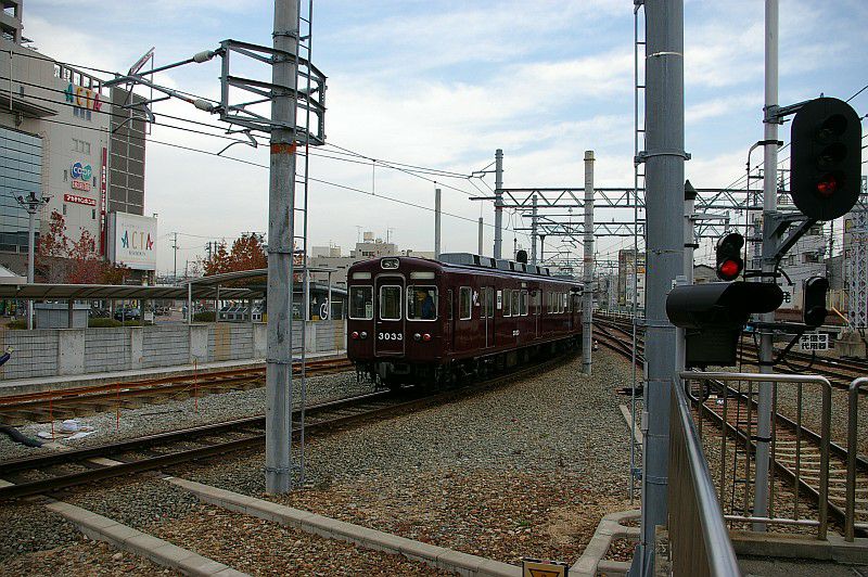 阪急 京都線 十三 2008.12.11 6300系/2300系 阪急電鉄 2023年05月12日 阪急京都線の6300系特急。(2008.12.11/十三) 3300系の特急。 京都線の特急といえば6300系でしたが、 それ以外にも古めの車両でも特急運用がありました。(2008.12.11/十三) 京都線の2300系。 かなり古い車両ですが、リニューアルされているため 他の形式と比べてそれほど古さを感じないスタイルで、 このころはまだ現役で走っていました。(2008.12.11/十三) 7300系リニューアル車。 全面のデザインが大きく変わっていて、 8300系と9300系を合わせたようなスタイルになっています。 (2008.12.11/十三)