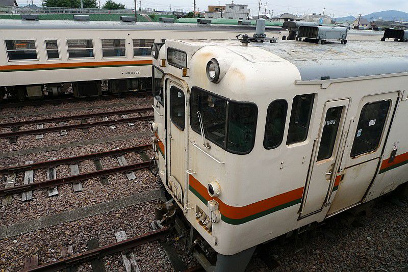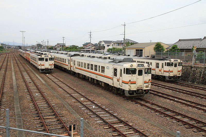 JR東海 高山本線 美濃太田車両区 2015.07.05 キハ40系 JR東海 高山本線 2024年09月25日 美濃太田車両区に留置されていたキハ40系。 高山本線のキハ40系の定期運用が終了した直後の頃で、 大量のキハ40系が留置されていました。(2015.07.05/美濃太田車両区) 美濃太田車両区に留置されている保存車両。 シートが被されていて中身はわかりませんが、 貴重な車両が残されているようです。(2015.07.05/美濃太田車両区)