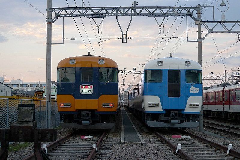 近鉄 大阪線 高安車庫 2013.07.21 近畿日本鉄道 2024年04月13日 高安車庫で並ぶ12200系と15200系「あおぞらII」。 (2013.07.21/高安車庫) リニューアル前のオリジナル塗装の20000系「楽」。 (2013.07.21/高安車庫)