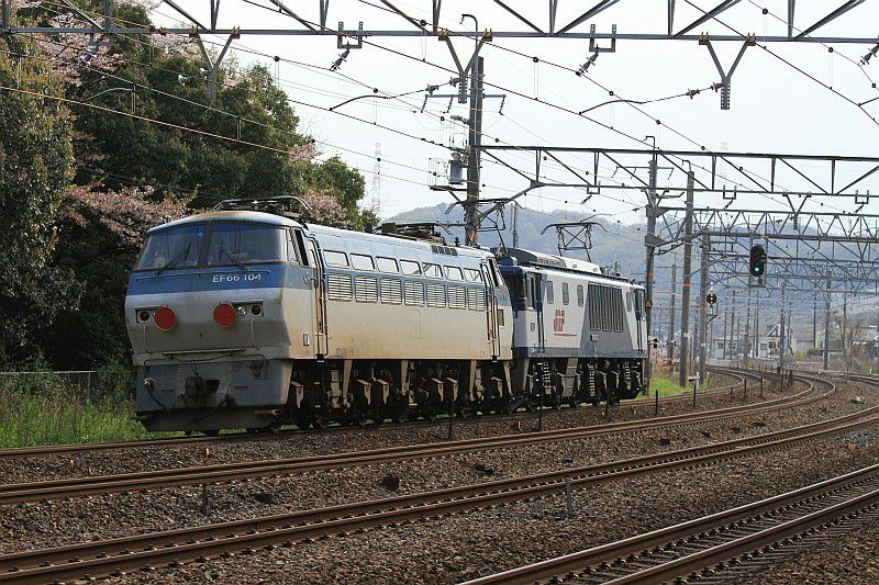 JR西日本 東海道本線 山崎-島本 2017.04.15 EF64/EF66 JR西日本 東海道本線 2025年05月15日 山崎で見かけたEF64+EF66の回送列車。 通常の運用だったのかどうか忘れましたが、関西では珍しいEF64の写真が残っていました。 (2017.04.15/山崎-島本)