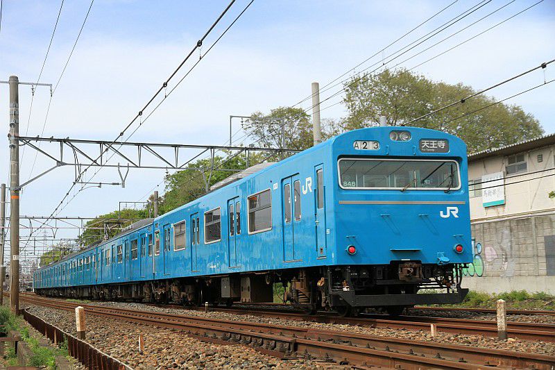 JR西日本 阪和線 杉本町-浅香 2017.05.02 103系/205系 JR西日本 阪和線 2025年05月29日 阪和線の103系。 リニューアル有無で、断面の異なる車両が混在して走っていました。 (2017.05.02/杉本町-浅香) 阪和線の205系。 東海道本線から転属してきた205系0番台です。 阪和線オリジナルの1000番台とは前面窓の形状が異なっていました。 (2017.05.02/杉本町-浅香)
