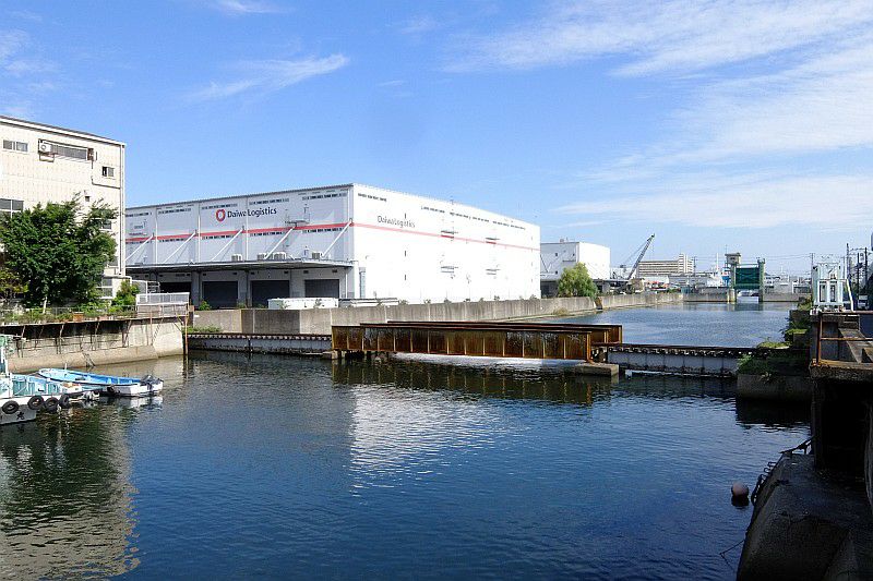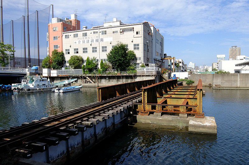 三十間堀川にかかる鉄橋跡。