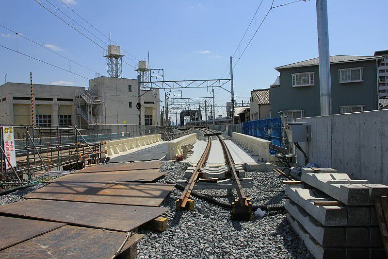JR西日本 城東貨物線 吹田-鴫野 2016.03.26 蒲生踏切の工事風景 JR西日本 おおさか東線 2025年01月04日 おおさか東線開業に向けて複線化工事中の蒲生踏切。 JR野江-鴫野間に今も残る踏切で、もともと単線だった区間を複線化工事している最中でした。 (2016.03.26/吹田-鴫野)