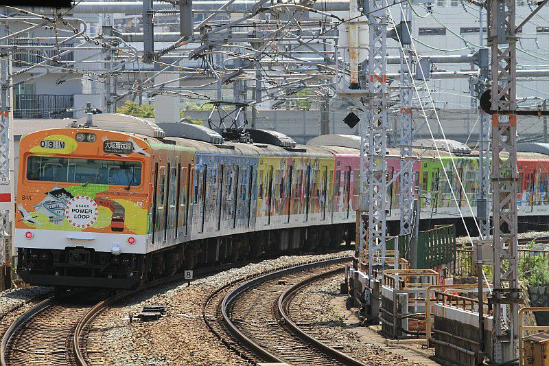 JR西日本 大阪環状線 寺田町 2016.07.18 103系/201系 JR西日本 大阪環状線 2025年01月26日 大阪環状線の103系「OSAKA POWER LOOP」ラッピング編成。 この頃、大阪環状線改造プロジェクトとして駅のリニューアルが進められていて、 プロジェクトをイメージしたカラフルなラッピング編成が走っていました。 (2016.07.18/寺田町) オレンジ色の103系。(2016.07.18/寺田町) オレンジ色の201系。(2016.07.18/寺田町) 真田丸ラッピングの201系。 大河ドラマに合わせたラッピング列車です。(2016.07.18/天王寺)