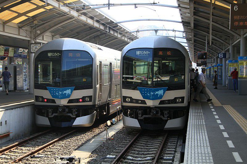 高松駅に停車中の5000系「マリンライナー」。