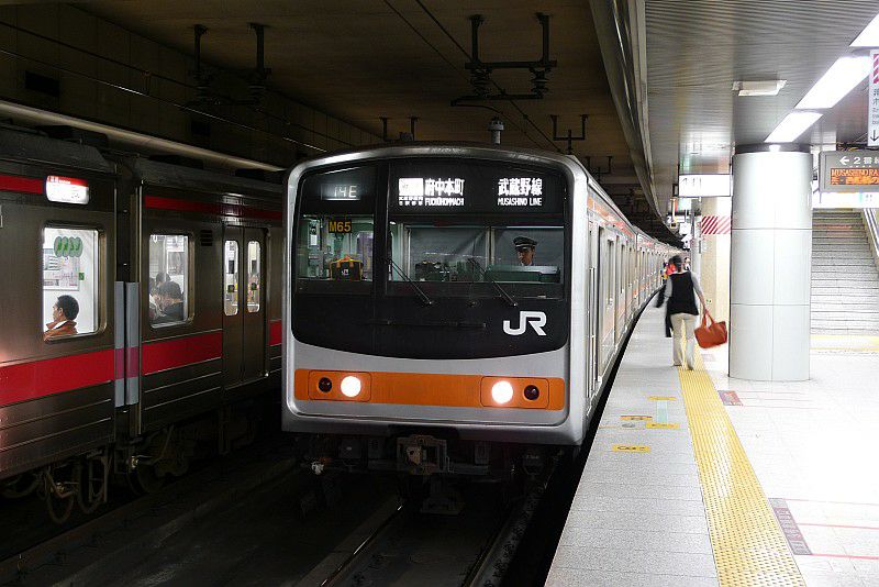 京葉線と武蔵野線のメルヘン顔の205系が並んでいました。(2009.10.12/東京)