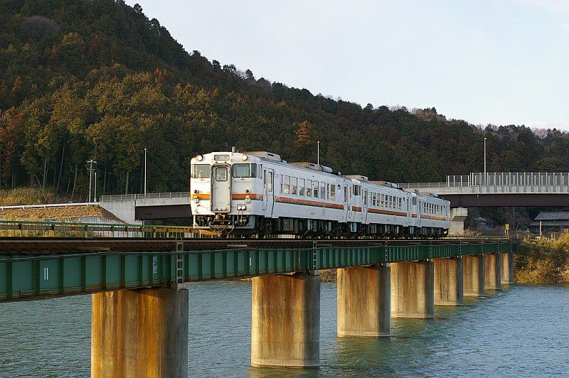 JR東海 紀勢本線 三瀬谷-滝原 2010.11.27 キハ40 JR東海 紀勢本線 2023年12月30日 三瀬谷-滝原間の鉄橋を渡るキハ40系。 この頃の紀勢本線の普通列車はキハ40系かキハ11系でした。(2010.11.27/三瀬谷-滝原) キハ40系で運転されていた快速「熊野古道伊勢路号」。 大きなヘッドマークも付いた、季節限定の臨時列車でした。(2010.11.27/大内山-梅ケ谷) 徳和-多気間の鉄橋を渡るキハ40系。 だいたい2~3両だっが気がしますが、 時間帯によっては4両編成の列車も走っていました。(2010.11.27/徳和-多気)
