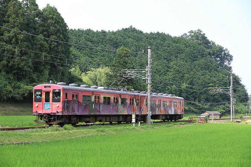JR西日本 和歌山線 吉野口-北宇智 2015.08.09 117系/105系 JR西日本 和歌山線 2024年10月29日 和歌山線 吉野口-北宇智間の水田脇を走る117系。 この頃には単色化の塗色変更が進んでいましたが、 水色に白いラインのカラーリングの編成も残っていました。 ベースカラーは全然違いますが、新快速時代をイメージできる塗分けでした。 (2015.08.09/吉野口-北宇智) 和歌山線を走る105系。 こちらは単色化されて、103系のような雰囲気になっています。(2015.08.09/吉野口-北宇智)