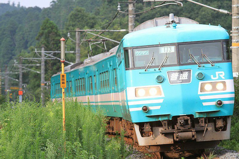 JR西日本 和歌山線 吉野口-北宇智 2011.07.31 105系 JR西日本 和歌山線 2024年01月29日 和歌山線の吉野口-北宇智間を走る105系。 「旅万葉」のカラフルなラッピング編成です。(2011.07.31/吉野口-北宇智) 和歌山地域色の青緑色となった105系。 阪和線の103系を思わせるようなカラーリングでした。(2011.07.31/吉野口-北宇智) オリジナルの春日色の105系。 塗色変更の過渡期で、様々なカラーリングが見れた頃だったようです。 (2011.07.31/吉野口-北宇智) 和歌山色の117系。 単色化される前の帯付きのカラーリングで、 色は違いますが新快速時代の雰囲気を残していました。(2011.07.31/吉野口-北宇智)