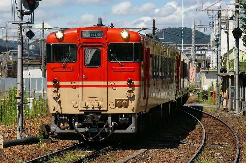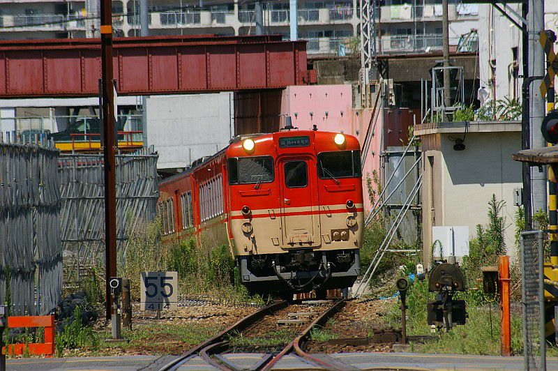 山陽電鉄の高架下をくぐって姫路駅に到着するキハ40系。
