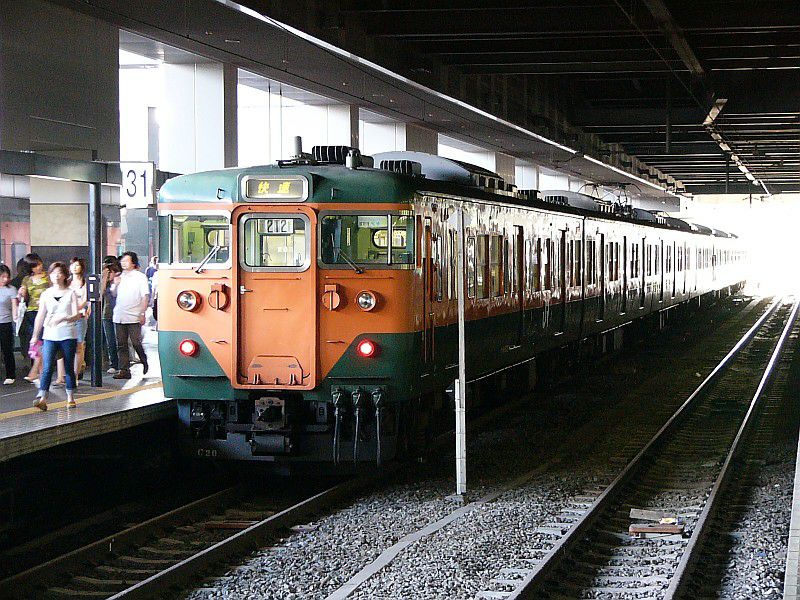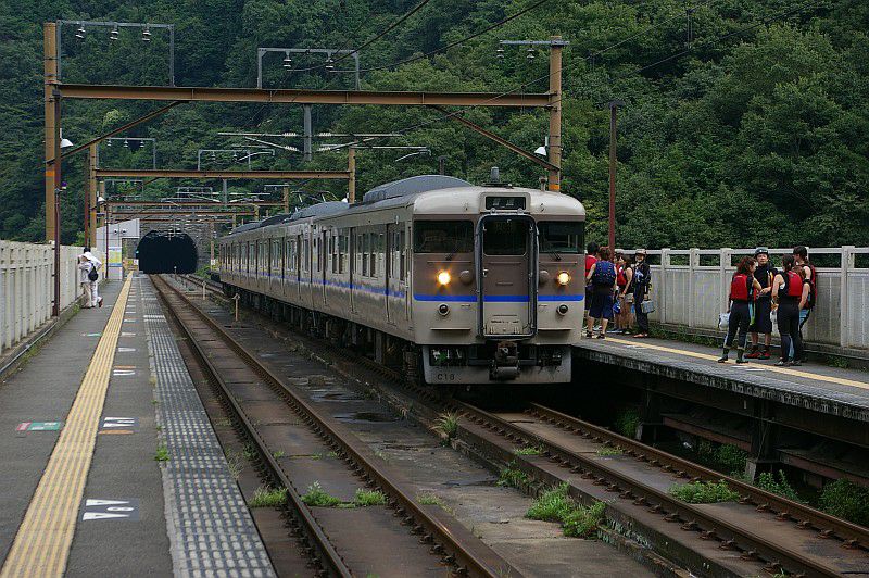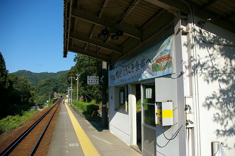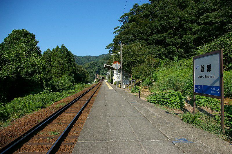 餘部駅の旧ホームは、現在とはホームと線路の位置が逆で、