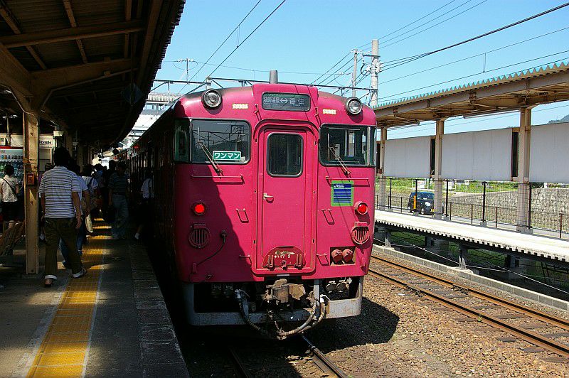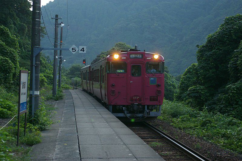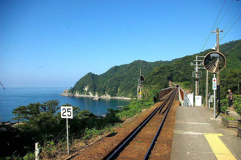 山側にホームがあり、海側が線路になっていました。(2007.08.25/餘部)