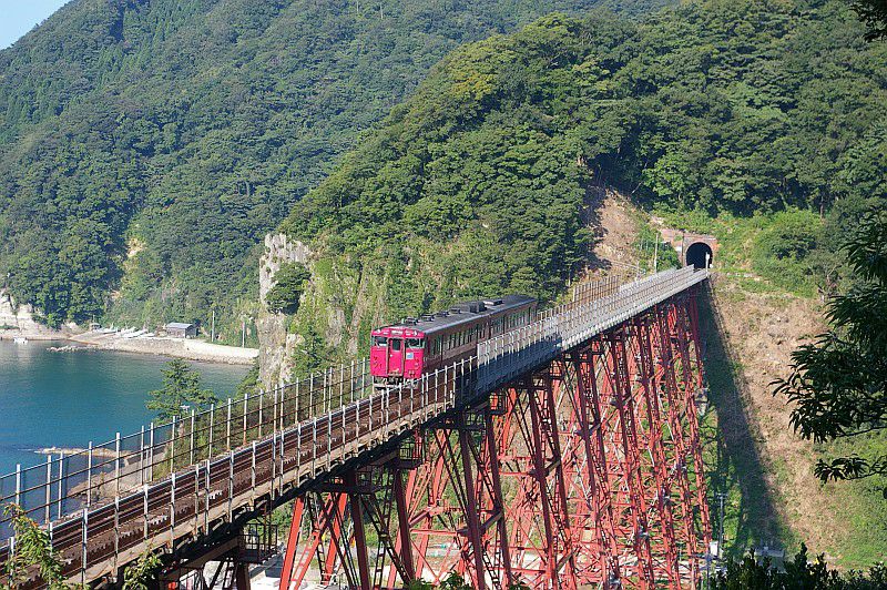 旧余部鉄橋を渡るキハ47普通列車。
