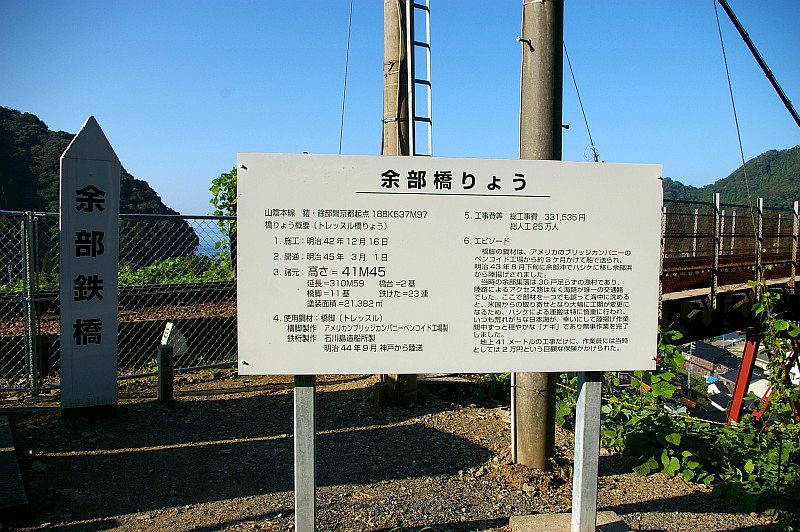 駅のそばには余部橋梁の説明板と、駅の壁面に書かれていたイラスト。