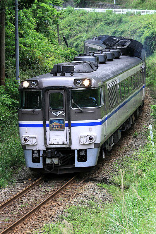 JR西日本 播但線 長谷-生野 2010.06.04 キハ181系はまかぜ JR西日本 播但線 2023年11月13日 長谷-生野間の生野峠を行くキハ181系「はまかぜ」。 キハ189系に置き換えられる前の最後の頃の姿です。(2010.06.04/長谷-生野) 播但線のキハ41形。 キハ47形を両運転台化した車両で、銀の馬車道ラッピング車でした。 (2010.06.04/青倉-竹田)