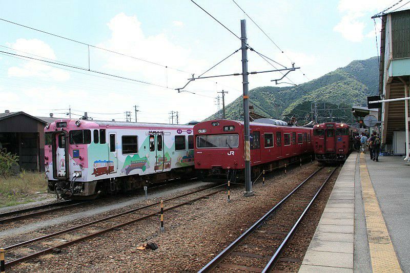 JR西日本 播但線 竹田-和田山 2006.08.27 キハ40系豊岡色と広島色 JR西日本 播但線 2022年02月21日 播但線のキハ40系。 手前の1両はこの地域を走る豊岡色でしたが、 後ろの1両はなぜか広島色の車両の混色編成でした。 (2006.08.27/竹田-和田山)