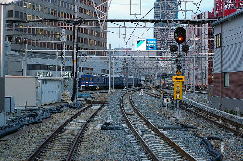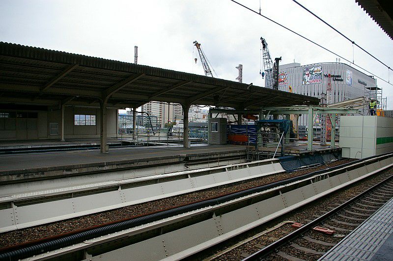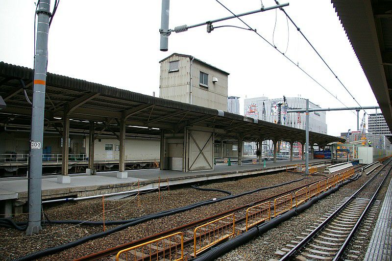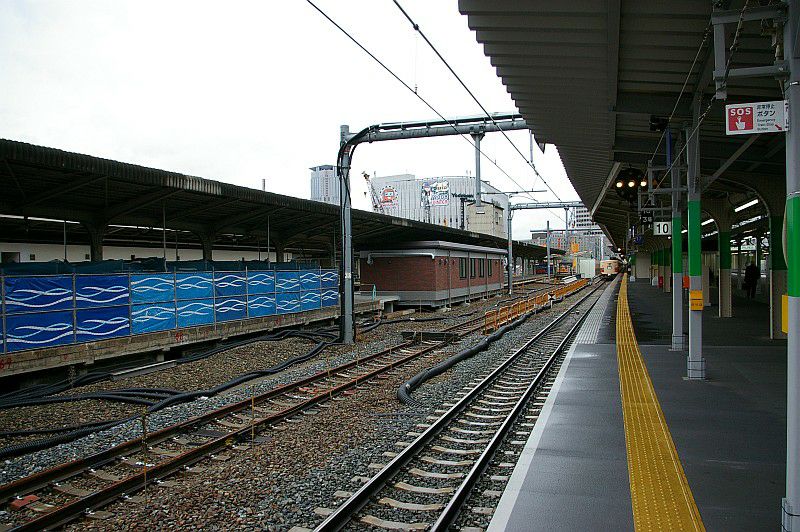 当時の大阪駅9番線は仮設ホームで、ホームの下に中途半端な線路が残っていました。