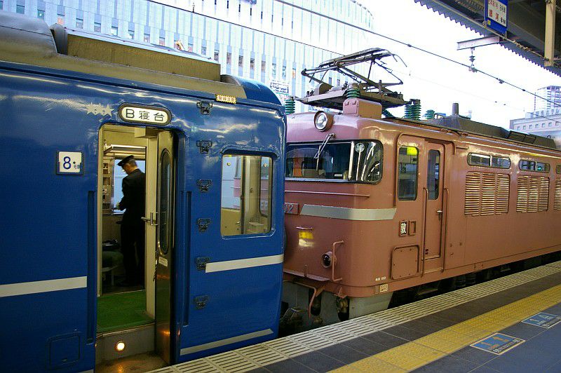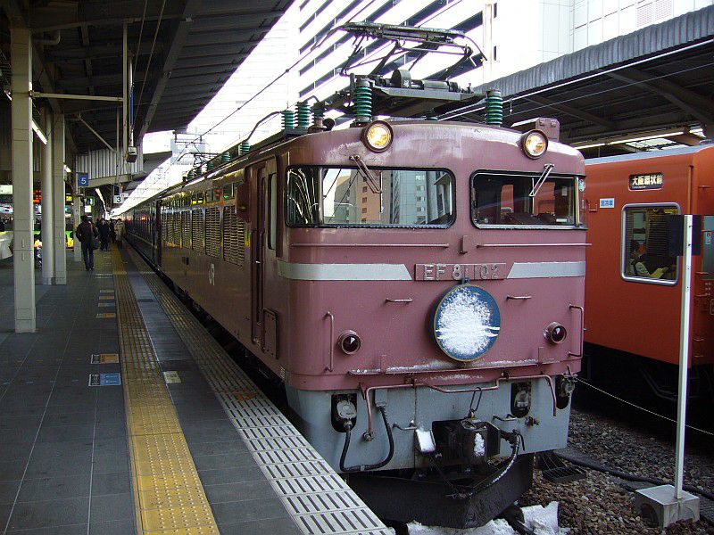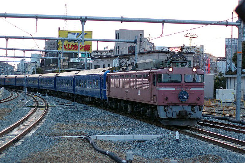 運用の都合なのか、たまにトワイライト色のEF81も入ってきていました。