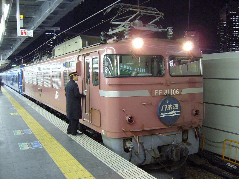 「日本海」の場合は基本的ローズピンクのEF81が使われていましたが、