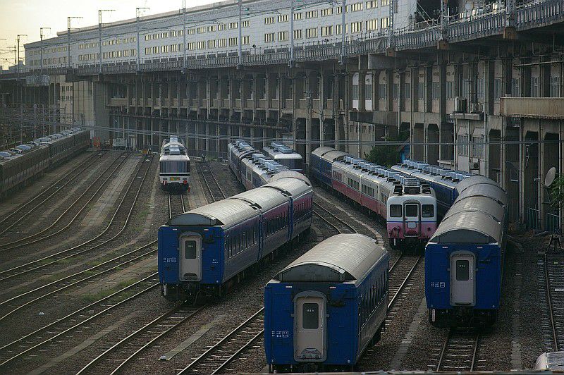 宮原の留置線には、「あすか」「シュプール」やブルートレインといった