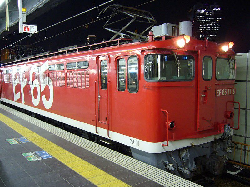 赤色が特徴的な、レインボー塗装機のEF65-1118です。
