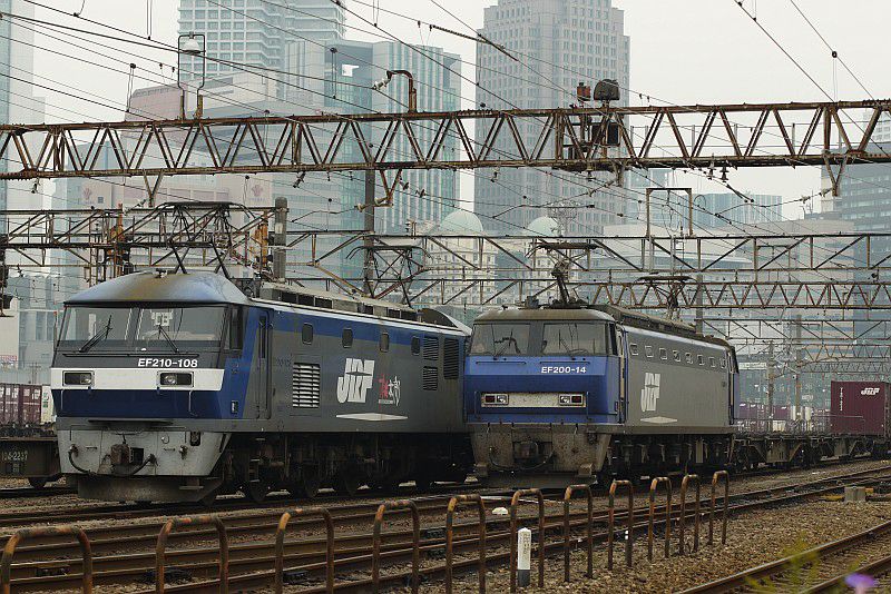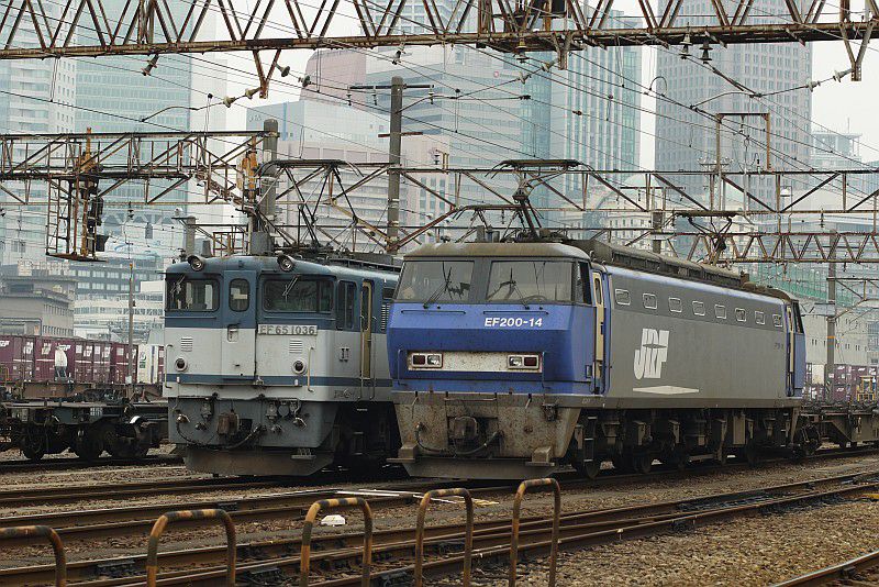 JR西日本 梅田貨物線 梅田 2011.11.28 EF200 JR西日本 東海道本線 2024年02月17日 梅田貨物駅に停車中のEF200。(2011.11.28/梅田) EF210とEF200が並んだところです。 デザイン的にはよく似た印象でしたが、実際に並ぶと結構違っています。 EF200の方が丸みがなくて力強い印象でした。(2011.11.28/梅田) EF65-1000番台とも並びました。(2011.11.28/梅田)