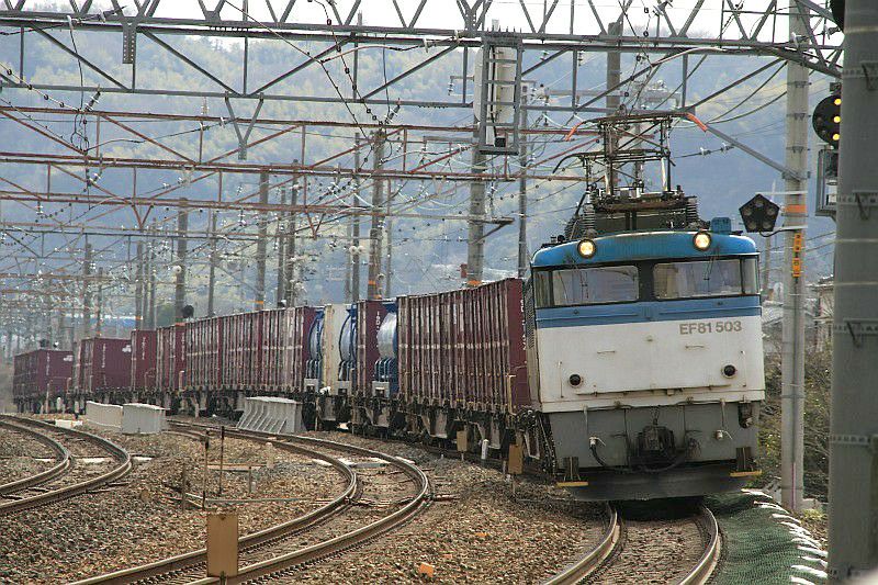 JR西日本 東海道本線 山崎-島本 2010.10.11 JR西日本 東海道本線 2023年12月24日 東海道本線を走るEF65-1132チキ編成。 JR貨物ではなくJR西日本のEF65で、ピカピカの特急色でした。(2010.10.11/山崎-島本) EF81-453貨物列車。 EF81の中でもレアな450番台です。(2010.10.11/山崎-島本) EF81-503貨物列車。 こちらもレアな500番台です。(2011.03.18/山崎-島本)