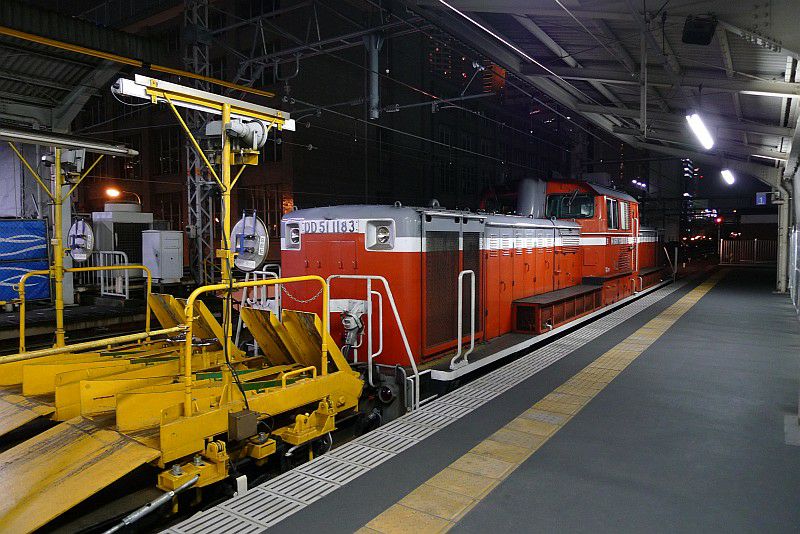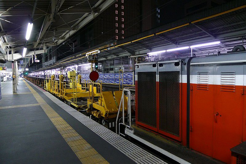 JR西日本 東海道本線 大阪 2010.10.14 JR西日本 東海道本線 2023年12月25日 大阪駅に停車中のDD51-1183チキ編成。 たまに見かけることができる工事用臨時列車で、 この日はけっこう長い編成を繋いでいたようです。(2010.10.14/大阪)