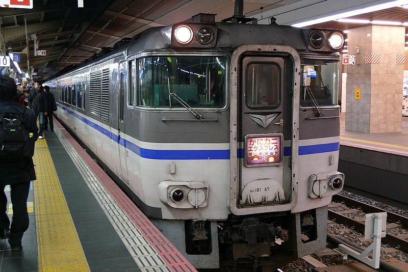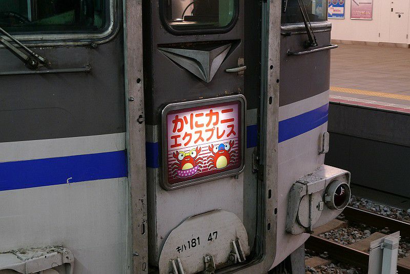 JR西日本 東海道本線 大阪 2010.12.09 キハ181系かにカニはまかぜ JR西日本 東海道本線 2023年12月31日 大阪駅に停車中のキハ181系「かにカニはまかぜ」。 定期列車の「はまかぜ」がキハ189系に置き換わった後ですが、 その年の「かにカニはまかぜ」は、引き続きキハ181系で運行されていました。 キハ181系の頃は、「かにカニエクスプレス」の かわいい専用ヘッドマークが使われていました。(2010.12.09/大阪)