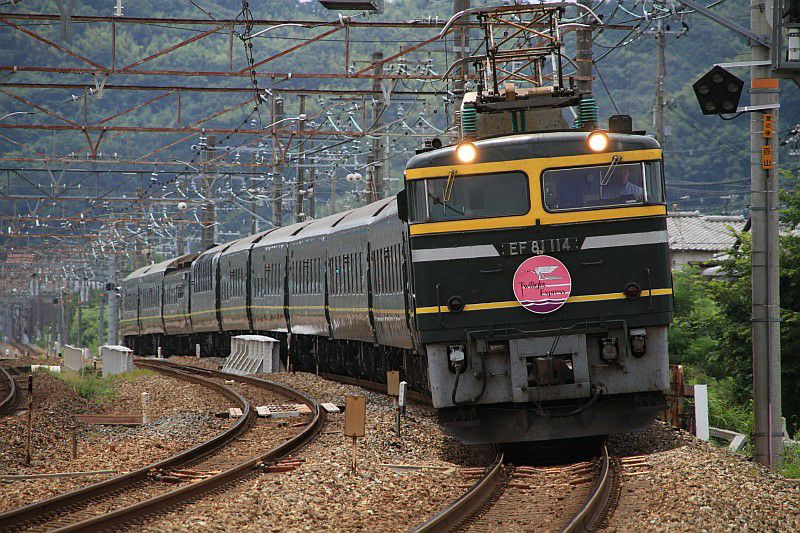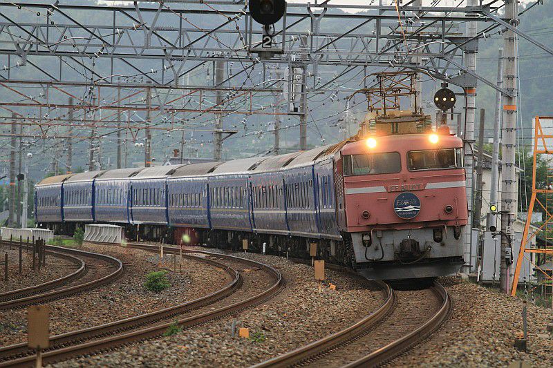 山崎のサントリーカーブを行くEF81「トワイライトエクスプレス」。