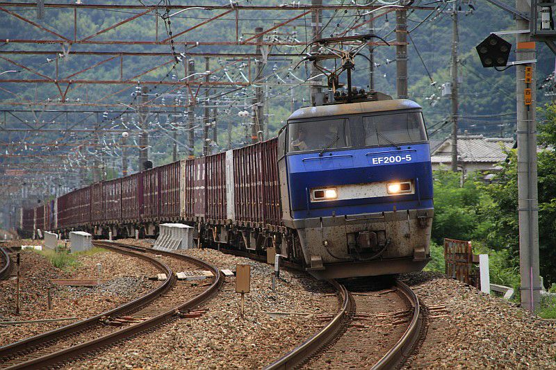 山崎のサントリーカーブを行くEF200貨物列車。