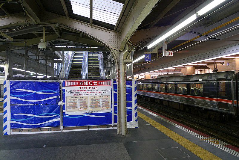 工事中の大阪駅ホーム。
