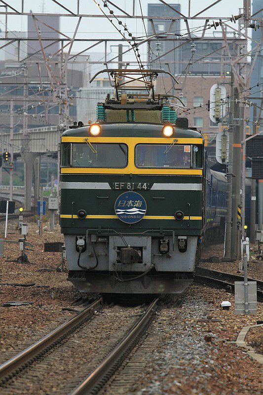 新大阪駅に到着するEF81「日本海」。
