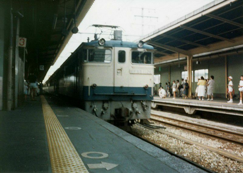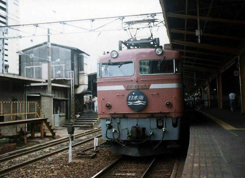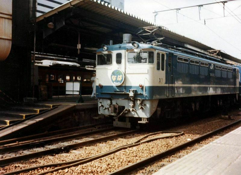 JR西日本 東海道本線 大阪 1987年 日本海/なは JR西日本 東海道本線 2021年12月15日 大阪駅11番線に停車中のEF81「日本海」。 客車は白帯の24系だったようです。 明るいので昼間にも見えますが、夕方の列車だったのか、 当時はダイヤが違っていたのかはわからないです。(1987年/大阪) 大阪駅4番線に停車中の24系25形「日本海」。 午前中に青森から到着した列車です。(1987年/大阪) 大阪駅10番線に停車中のEF65+24系の「なは」。 午前中に九州から到着した列車です。 当時の「なは」は西鹿児島まで走っていました。(1987年/大阪) 大阪駅4番線に停車中の14系座席車。 列車名がわかりませんが、山陰方面か信州方面の急行列車ではないかと思います。 (1987年/大阪) EF65+20系寝台列車。 20系ですがテールマークもなくて列車名不明です。 こちらも山陰方面か信州方面の急行列車ではないかと思います。(1987年/大阪) PR