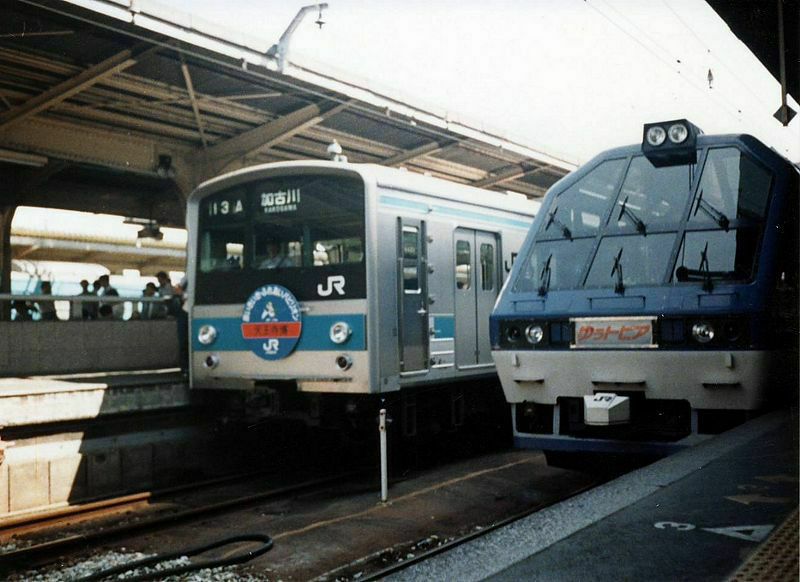 大阪駅に停車中の205系とキハ65系「ゆぅトピア」。