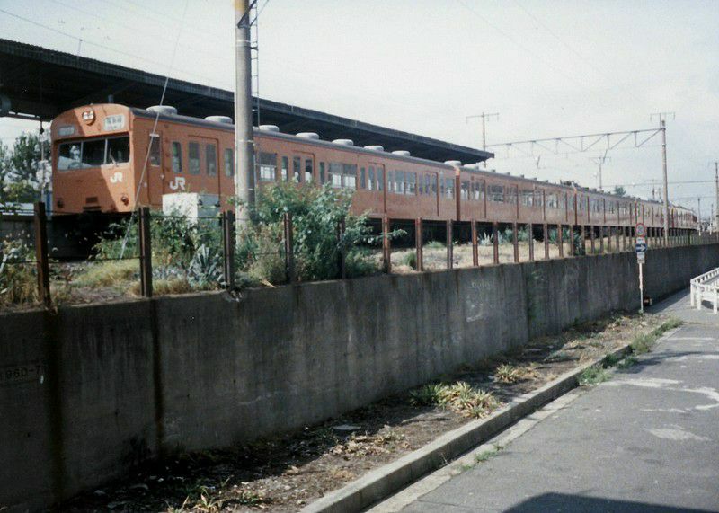 桜島駅に停車中の103系。