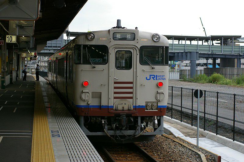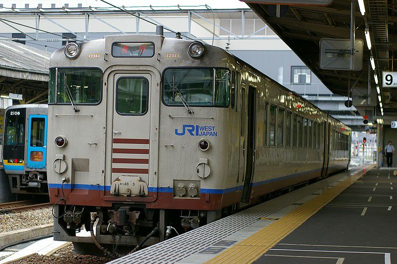 JR西日本 津山線 津山 2008.08.30 急行つやま JR西日本 津山線 2023年04月12日 津山駅に停車中の岡山行きキハ120系。(2008.08.30/津山) 岡山駅に停車中のキハ120系。 法界院行きの一駅だけの列車が存在していたようです。(2008.08.30/岡山) 岡山駅に到着した急行「つやま」。 キハ48を使用した急行列車で、JR最後の昼行急行でした。(2008.08.30/岡山) 岡山駅に停車中の吉備線キハ47。 この頃の岡山駅はいろいろ工事中で、 吉備線ホームの隣も線路が撤去されて空き地のような状態になっていました。 (2008.08.30/岡山)