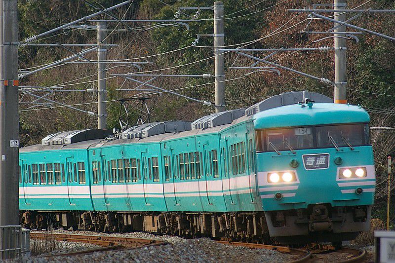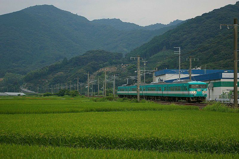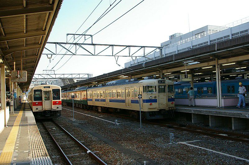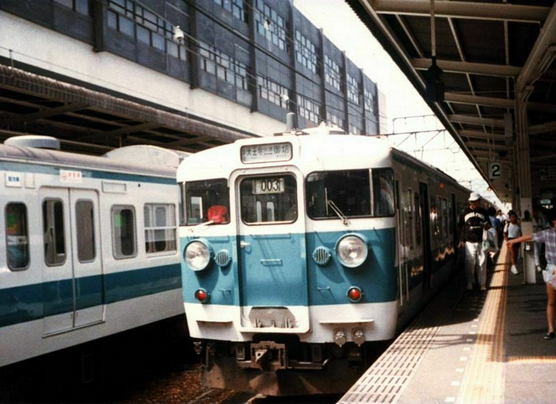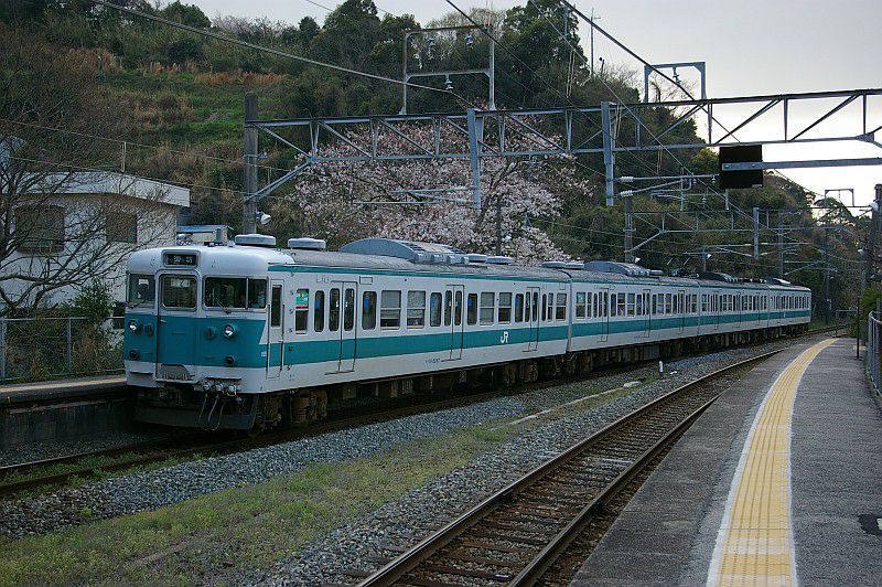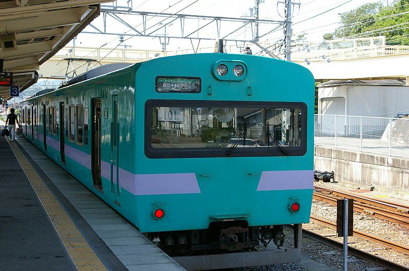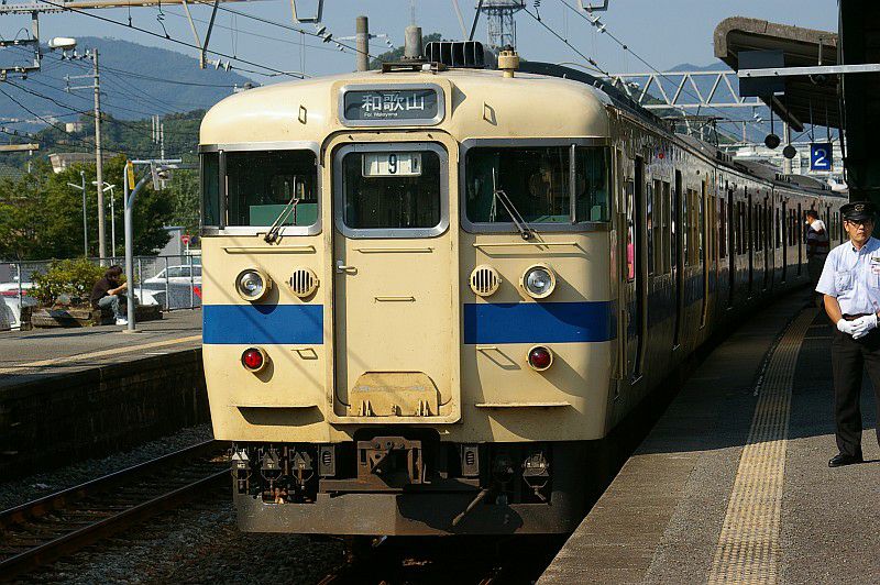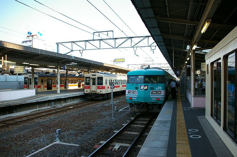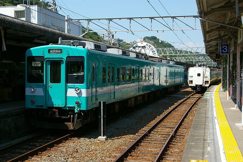 白浜駅に停車中の105系と381系増結編成。